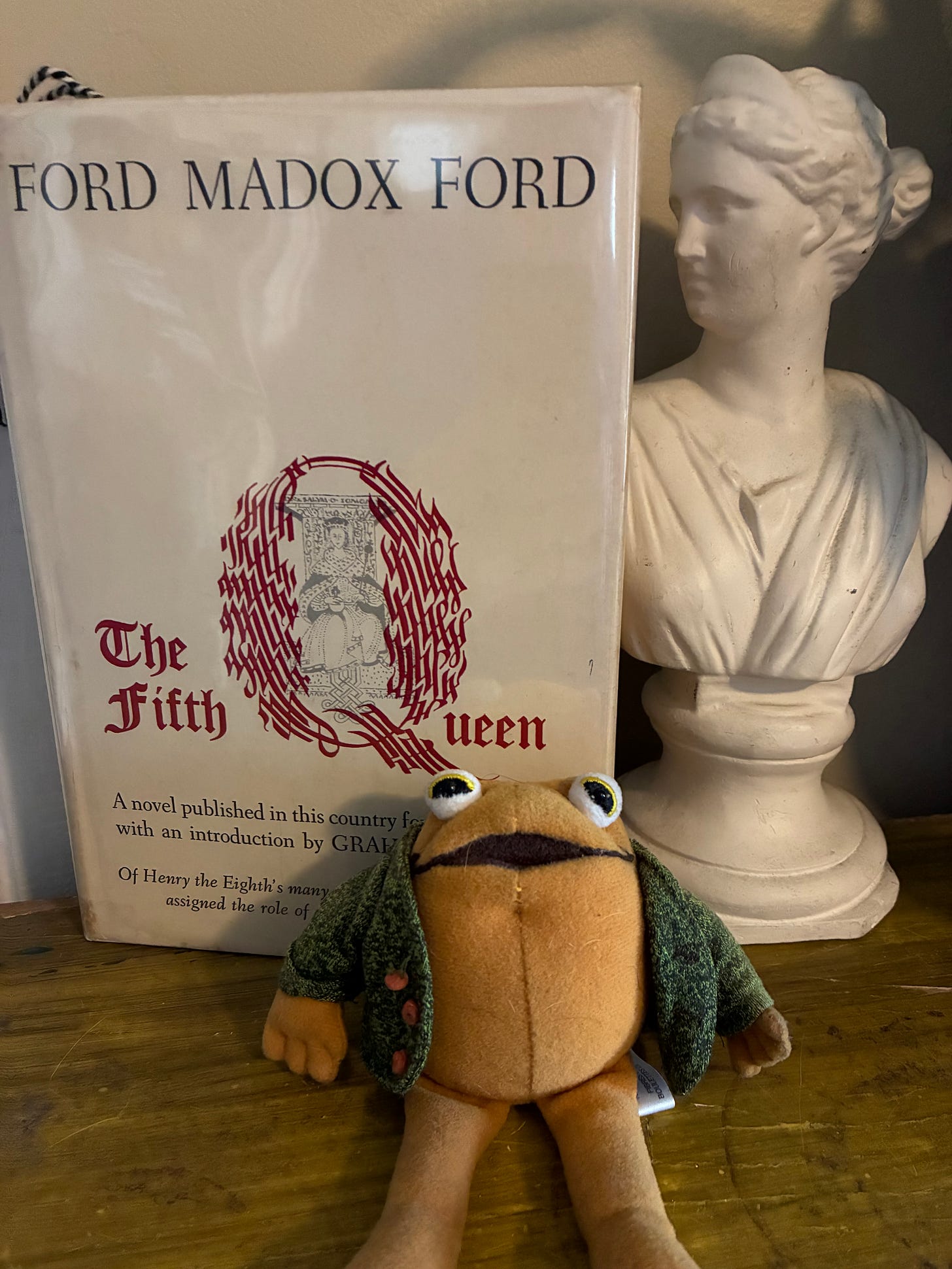 Our book today is actually a trilogy, The Fifth Queen by Ford Madox Ford, consisting of 1906’s The Fifth Queen: And How She Came to Court, 1907’s Privy Seal, and 1908’s The Fifth Queen Crowned, all three books revolving around Catherine Howard, the fifth wife of England’s King Henry VIII.